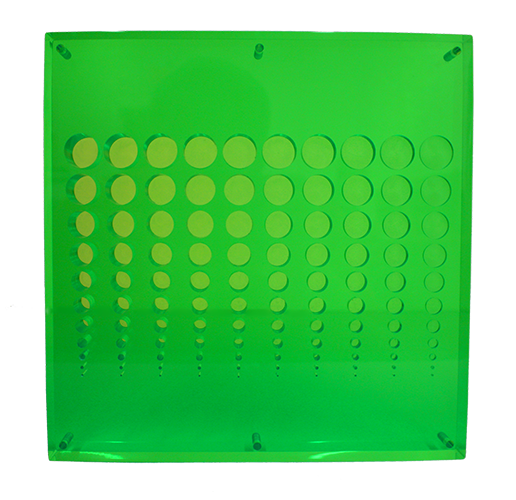 Le modèle L-760-LC1 comporte des trous qui changent progressivement de 2 mm de diamètre de haut en bas et de 2 mm de profondeur de droite à gauche.