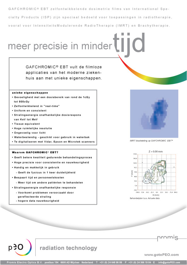 Bel PEO op 024 648 86 88 voor meer informatie over de XR-QA of andere producten van ISP Gafchromic, of contact PEO.