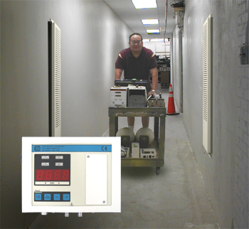 Model 375P-336 is a digital Model 375 controller coupled to two 2753 cm³ plastic scintillation detectors. These components are typically wall-mounted.