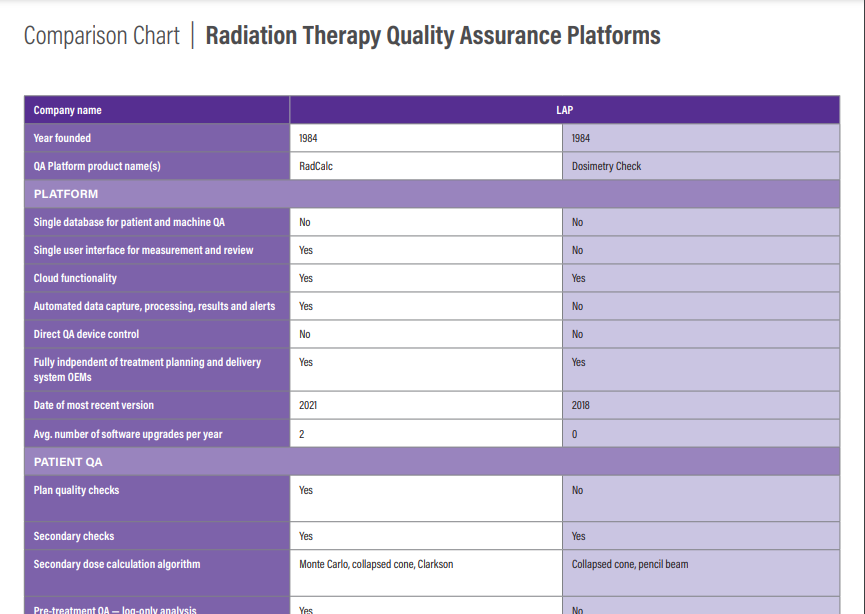 The September/October 2021 Imaging Technology News surveyed companies that offer QA software platforms to learn about the different offerings available. See the issue below, or click here, to see how the SunCHECK™ Platform stacks up against other offerings in the market.