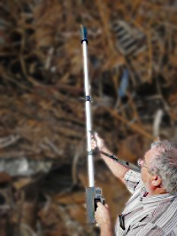 Georadis introduces the RT-30GT gamma spectrometer, a new model in the range of portable gamma spectrometers. The GM tube has now been integrated in the extendable telescope (1.2 to 2.2 meters long). This way an average tall person is able to reach up to 4 meters. This makes the objects to be scanned accessible and therefore particularly appropriate for the use in scrap and recycling industry.