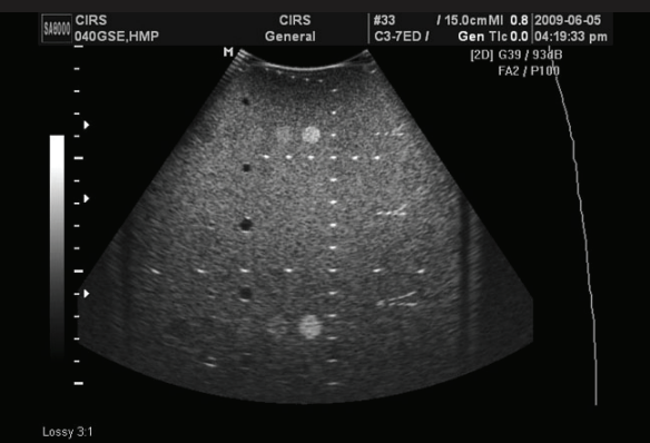 The CIRS Model 040GSE Multi-Purpose, Multi-Tissue Ultrasound Phantom is the most complete solution available for performance and quality testing. It contains nine performance measurements, including grey scale targets, anechoic stepped masses and elasticity targets.