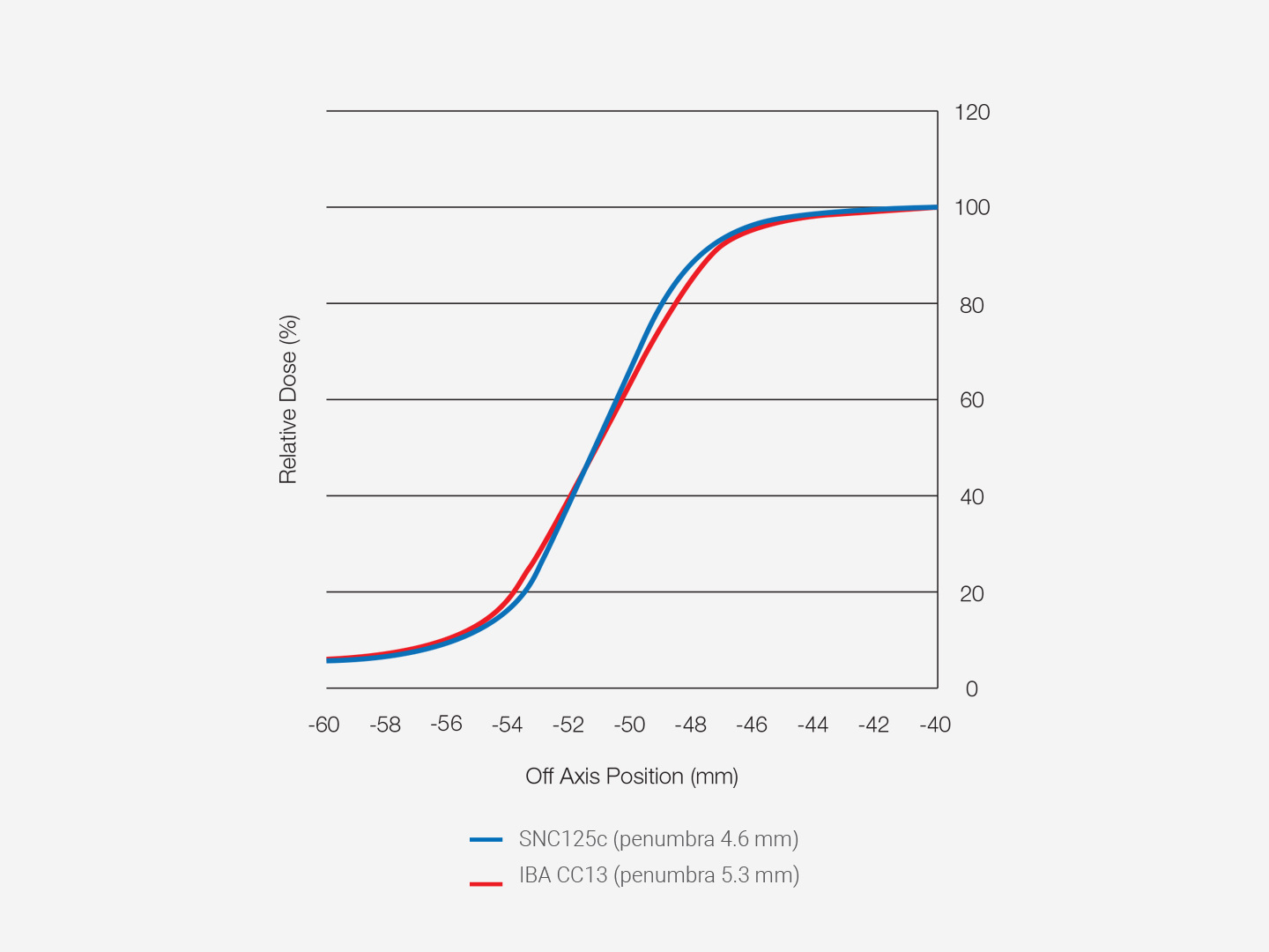 With a design that reduces the convolution of high-dose gradient regions during profile and depth measurements, SNC125c meets IEC 60731 standards and more: