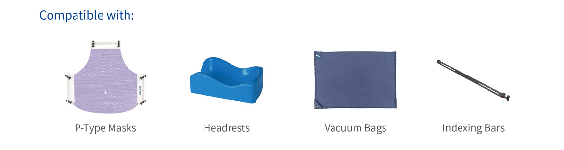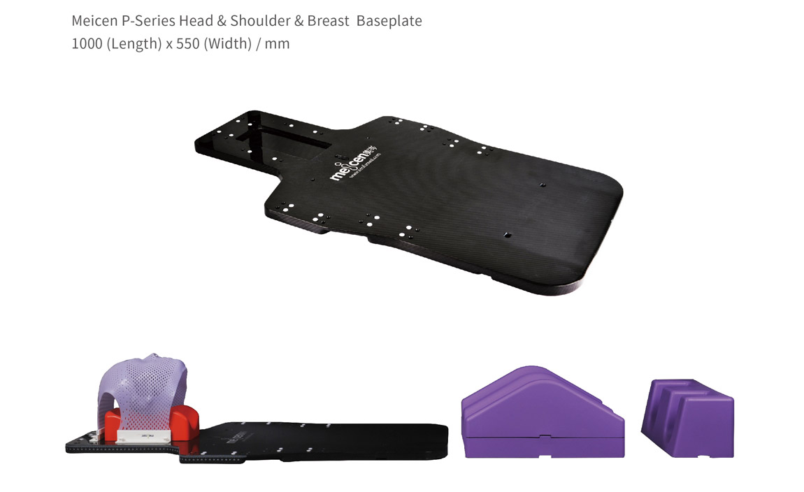 Meicen P-type thermoplastics are compatible with Meicen P-Series Head, Shoulder, and Breast Baseplates. The baseplate can be used to immobilize the head, neck, shoulder, and thorax and is customized for numerous treatments. There is also an expanded version available for whole-body treatment.